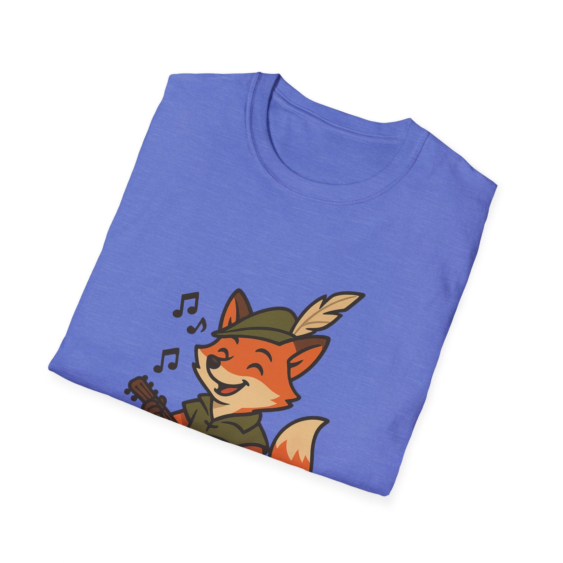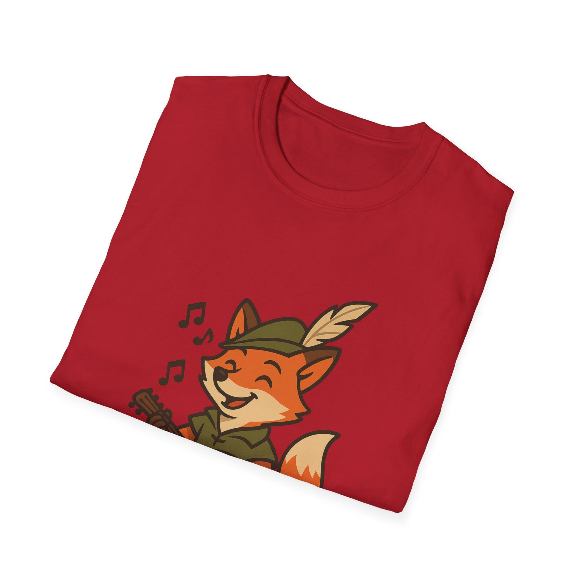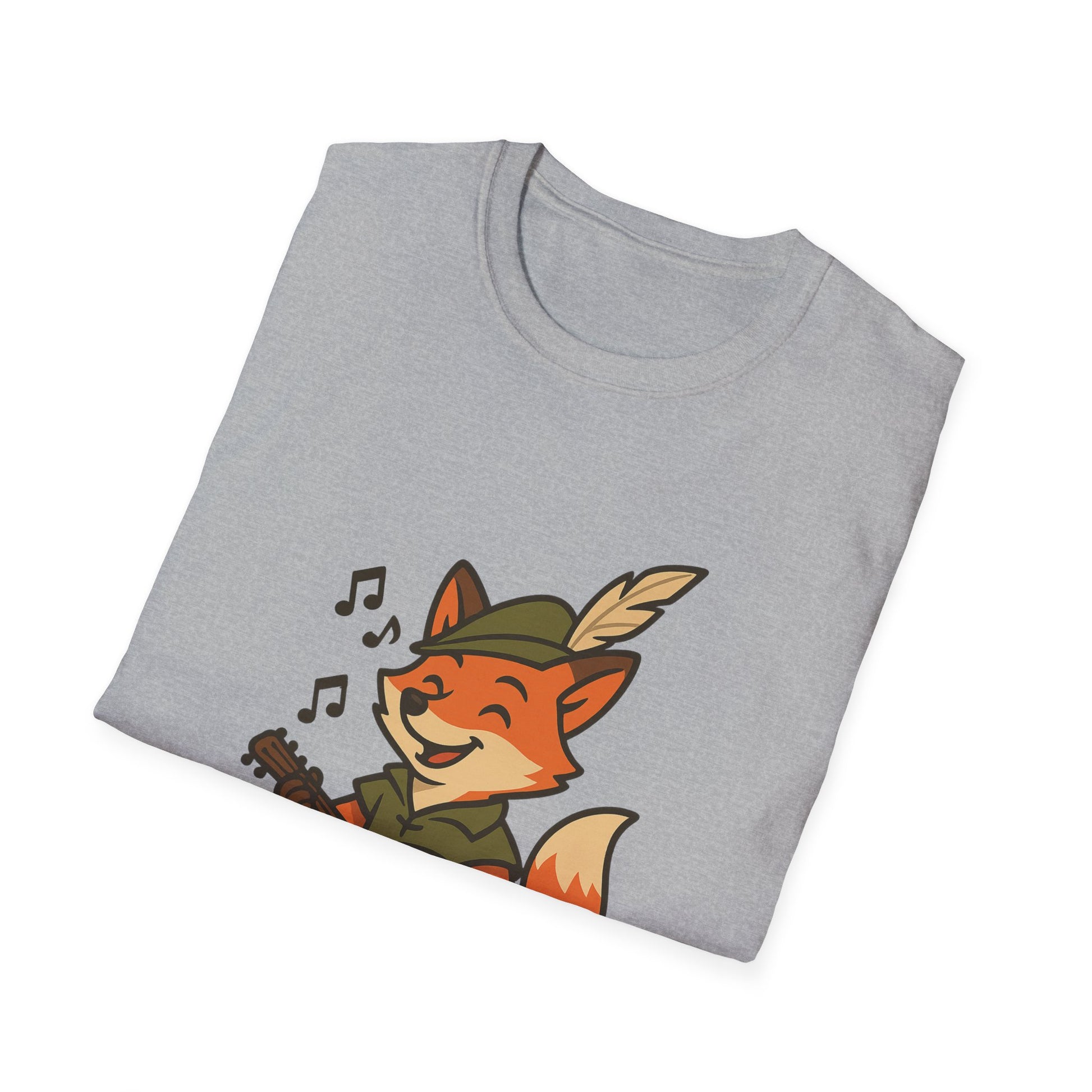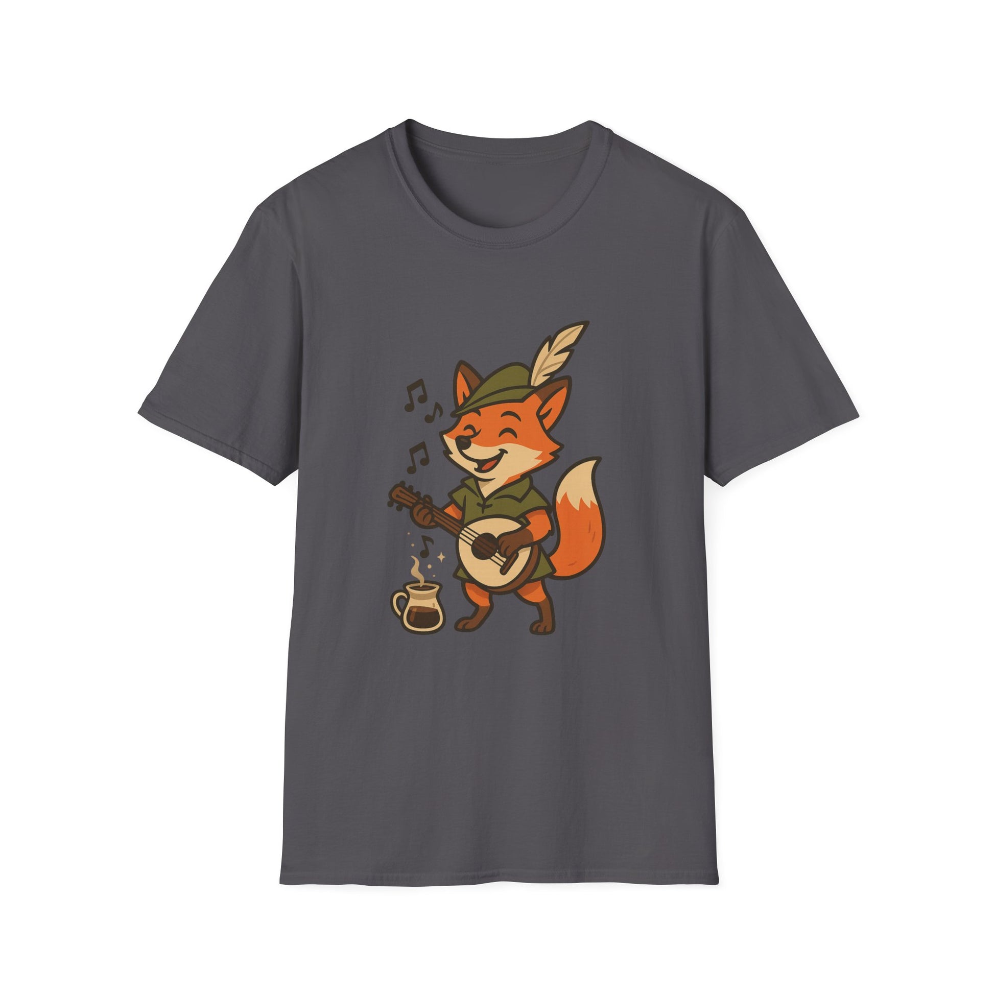 A comfortable unisex T-shirt featuring a design of a Fox Bard singing and enjoying their coffee. Perfect for those who enjoy whimsical and cute designs on their clothing. This T-shirt can add a touch of fun to everyday outfits and is great for casual wear or lounging at home. Ideal for animal lovers and fantasy enthusiasts. Suitable for gift-giving during birthdays, holidays, or as a treat for yourself.