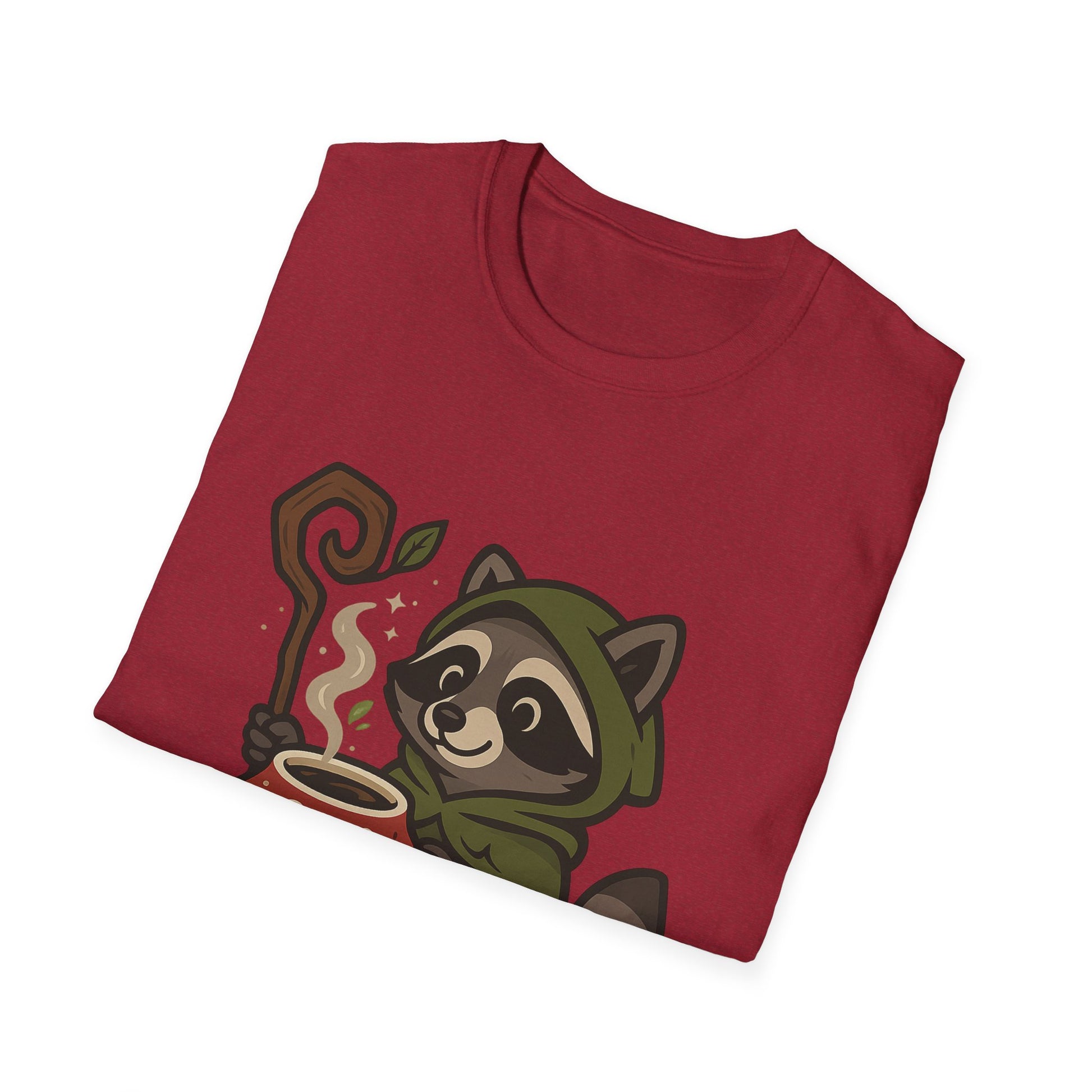 Wizard Raccoon Unisex Softstyle T-Shirt - Cozy Nature Vibe, Perfect for Casual Wear & Gifting